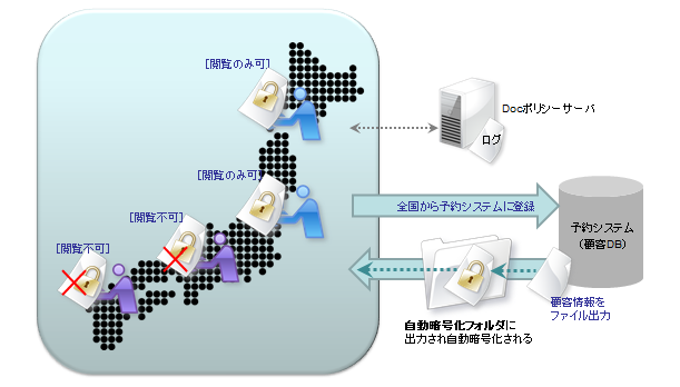 予約システムから出力したデータを、「パイレーツバスター Doc」で作成した自動暗号化フォルダに出力することで、自動的に暗号化処理を行えるようにしました。