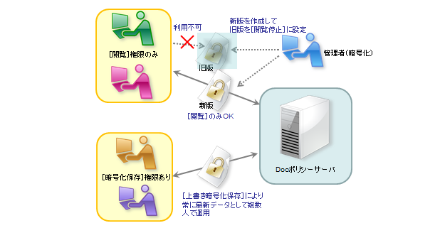 - ファイルを版数管理でき、その利用可否を管理者側で制御できる