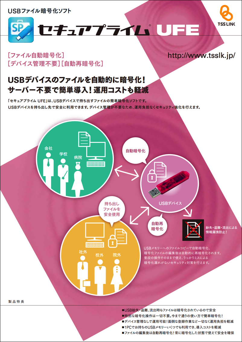 USBにコピーされたファイルを自動暗号化。ファイル編集後は自動的に再暗号化し、安全性を継続。製品詳細