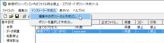 作成した「保護ポリシー」を元に「保護ツールのインストーラー」を作成します。メニューから「インストーラー作成」を選ぶだけで簡単に作成できます。