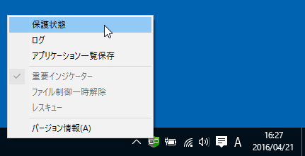 タスクトレイのメニューから、保護状態の確認もできます。