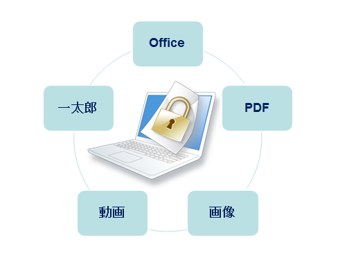 Word/Excel/PowerPoint/PDF/テキスト/CSV/画像/動画/一太郎ファイルに、利用権限(閲覧/印刷/編集/コピー/保存)を付与して暗号化することで、設定された権限どおりの利用を可能に、権限以外の利用を禁止します。