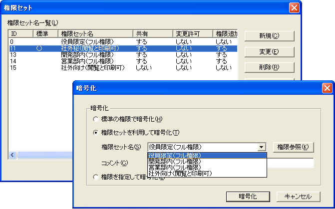 ※事前に部署や内容によって利用権限をテンプレート化しておき、選ぶだけで暗号化