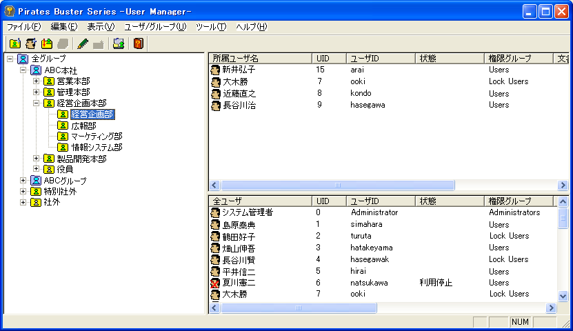 ユーザー管理は組織構成に合わせて一括設定。人事異動や退職時にスピーディに対応