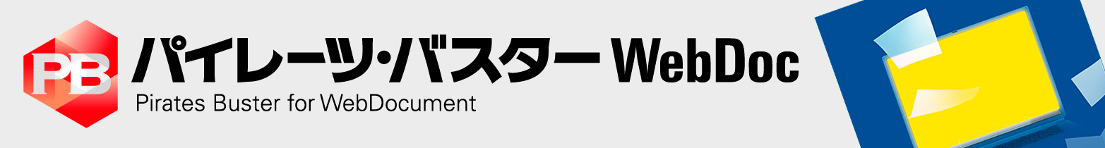「パイレーツバスター WebDoc」(正式名称:Pirates Buster for WebDocument)は、文書管理システムなどWebシステム上のWord/Excel/PowerPoint/PDF/画像/動画/一太郎ファイルなどがダウンロードされるときに、自動的に利用権限(閲覧/印刷/編集/コピー/保存)を付与して暗号化し、第三者の不正利用を防止するソフトです。
