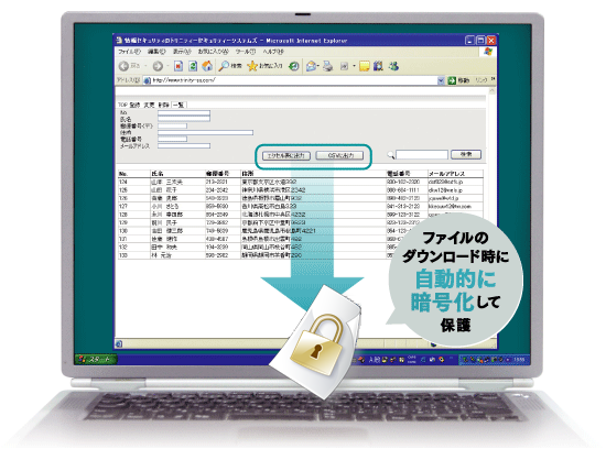 Webシステム上のファイルがダウンロードされる時に自動的に暗号化して情報漏洩を防止
