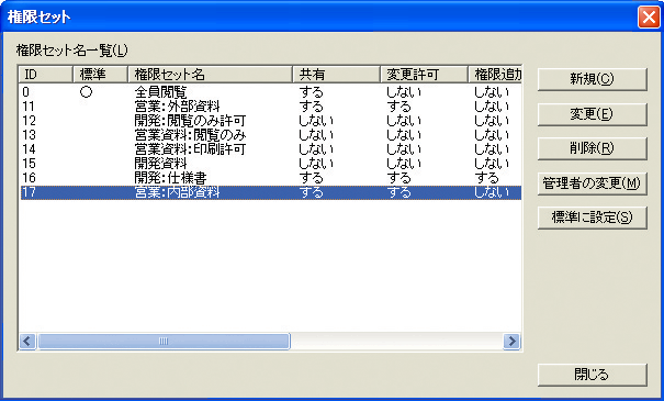 既定の「文書管理規程」がある場合は、ファイルの内容(重要度)によって異なる開示範囲(誰に利用許可するか)を、ファイルの利用権限として、容易にテンプレート化できます。