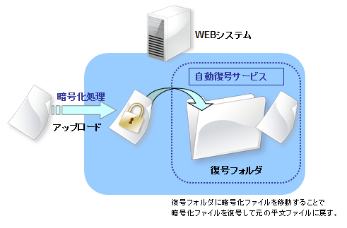 ファイルを管理するグループウェアや暗号化ファイルをアップロードして利用するようなシステムから、指定の復号フォルダーに暗号化ファイルを移動することで自動的に復号できます。