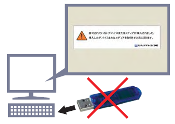 ※Windows 8以降では、未許可のUSBデバイス挿入時には、ロック画面が表示され強制的にデバイスが取り出されます。デバイスが取り外されるとロック画面は自動的に消えます。