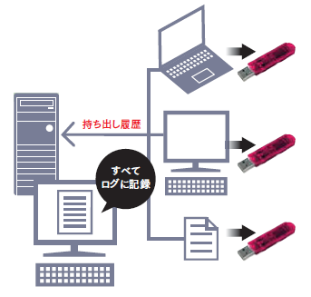 いつ、どの端末で、どのUSBデバイスが、どのファイルを持ち出したのかをログに記録します。万が一のファイルトレースにも利用できます。