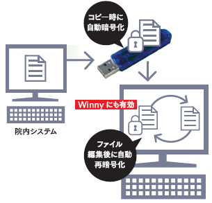 <特長3>USBデバイスで外部に持ち出すファイルは、暗号化でセキュリティ強化