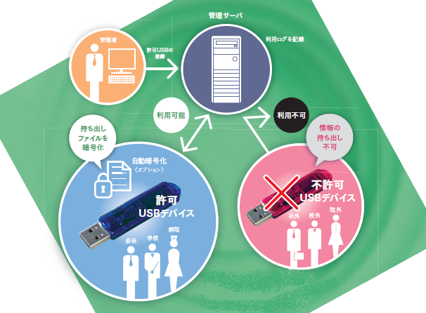 <特長1>管理者がUSBデバイスの利用を制御し、不正利用を防止